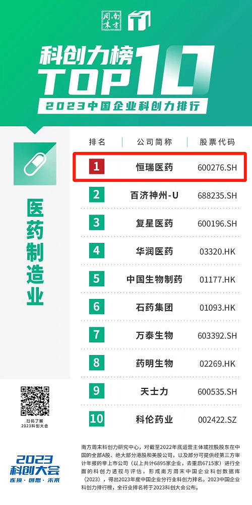 近日,南方周末科创力研究中心发布了与居民日常生活密切相关的30个行业中科创力排名前10的企业榜单。尊龙凯时人生就是博医药凭借多年来在科创领域的大力投入和优秀成果,蝉联中国企业科创力排行医药制造业榜首。