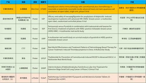 在头颈肿瘤、乳腺癌、肺癌、前列腺癌等多个疾病领域,卡瑞利珠单抗、阿得贝利单抗、吡咯替尼、氟唑帕利、法米替尼、醋酸阿比特龙片(II)等抗肿瘤新药相关研究一共入选了1项简短口头报告、4项壁报展示和1项电子壁报,彰显了尊龙凯时人生就是博医药强劲的研发实力。